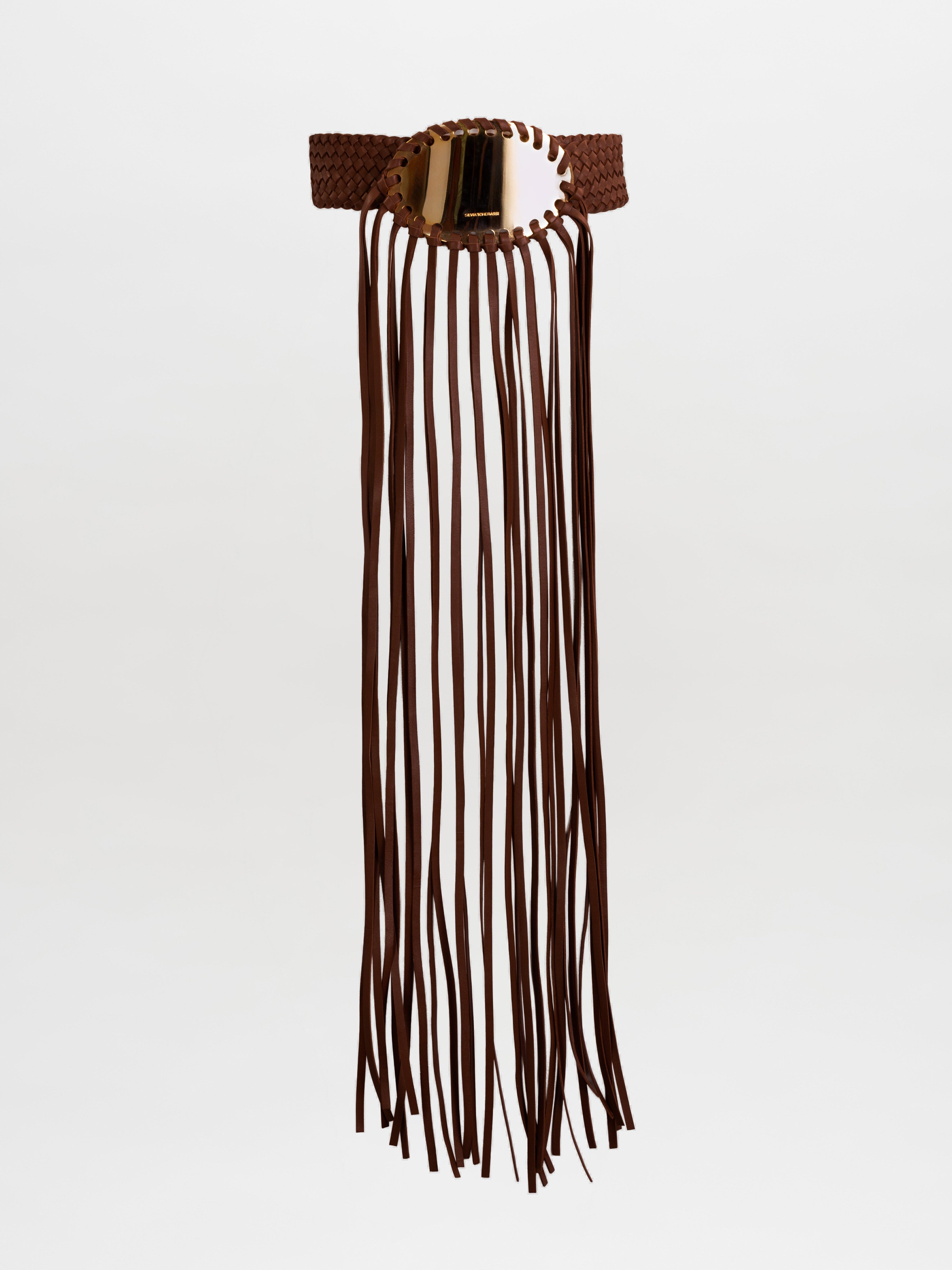 - Braided waistband with dramatic leather fringe